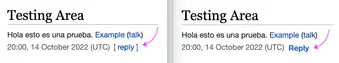 On 27 September, a new appearance for the Reply buttons that appear on desktop talk pages became available to people at the Czech and Hungarian Wikipedias who have the DiscussionTools beta feature enabled.