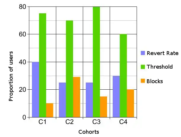 All metrics are standardized and clearly defined so that we can easily understand what their values mean and consistently use the same standards to evaluate the efficacy of programs and initiatives over time. Note that metrics are dependent on the context in which they are measured and therefore only make sense in these contexts. An editor with a high revert rate could be a vandal, or an advanced user removing vandalized text. In the case of our class of new enwiki users, a high revert rate is more likely vandalism.