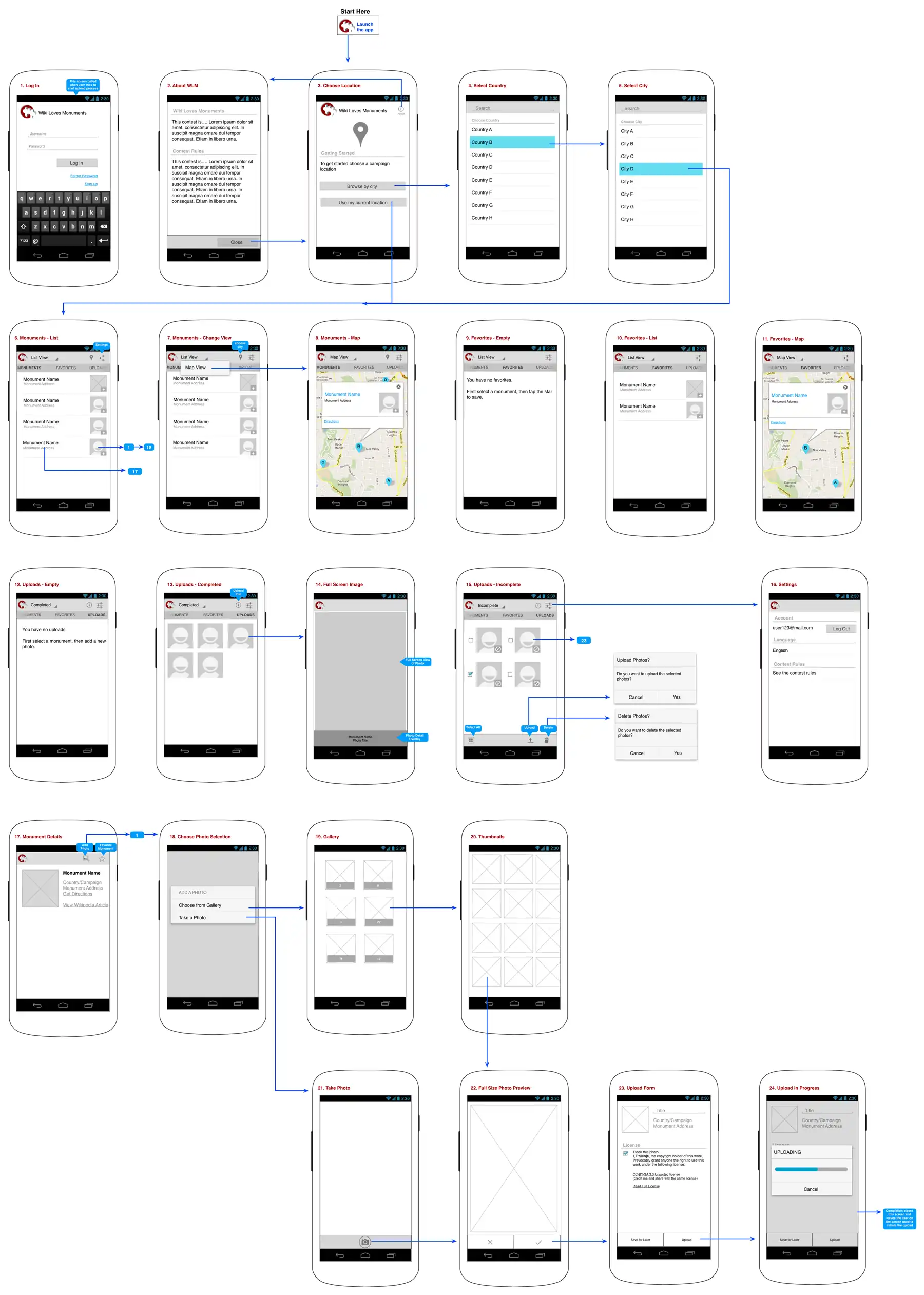 The wireframes from the Photo Upload project are useful for seeing the upload process from a general app perspective.