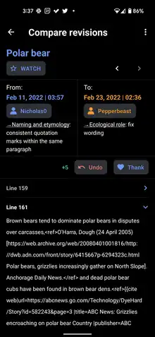 - This month we made some minor improvements to notifications and talk pages. For example, when you click the View changes" button for talk page notifications it opens the diff in the app instead of the browser (T333369).