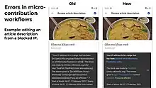 The team made various tweaks to the app to improve accessibility, which was written about in detail by one of the Android app developers, Cooltey Feng. One of the outstanding items to address as a result of the report is if our experience for users with screenreaders should be improved or standard. The team is looking to consult screenreader users to conduct an evaluation of the app experience and provide feedback. Please comment on our talk page or email android-support@wikimedia.org if you can provide feedback on the app experience while using a screenreader.