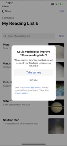 - We added the ability to receive and import shared reading lists. phab:T322158, phab:T322805
