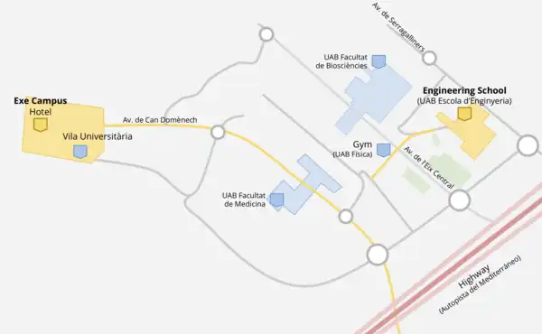 - Meeting point: Green area on your left when exiting Escola d'Enginyeria (the Hackathon venue): Exit the venue, turn left and walk ~50m. Escola d'Enginyeria will be on your left and Centre de Visió per Computador
