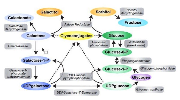 Galactosemia is a disorder that affects how the body processes a simple sugar called galactose. A small amount of galactose is present in many foods. It is primarily part of a larger sugar called lactose, which is found in all dairy products and many baby formulas. The signs and symptoms of galactosemia result from an inability to use galactose to produce energy.