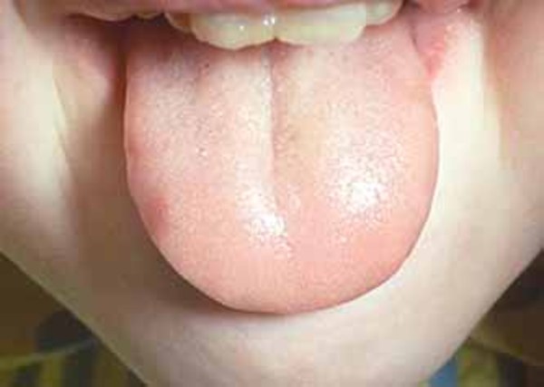 The first symptom of this condition is usually a hoarse voice, which is due to deposits in the vocal cords. In infancy the hoarseness is expressed as a weak cry. The voice abnormalities persist throughout life and can ultimately cause difficulty speaking or complete loss of speech. Involvement of the throat, tonsils, and lips can result in breathing problems and upper respiratory tract infections. Deposits in the tongue can result in a thick and shortened tongue. They can also thicken the band of tissue that connects the tongue to the bottom of the mouth (frenulum), making it difficult to extend the tongue. The tongue may also have a smooth appearance due to damage to the taste buds.