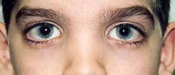 Individuals with Mabry syndrome have distinctive facial features that include wide-set eyes (hypertelorism), long openings of the eyelids (long palpebral fissures), a nose with a broad bridge and a rounded tip, downturned corners of the mouth, and a thin upper lip. These facial features usually become less pronounced over time.