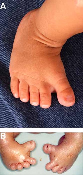 ), or a wide gap between the first and second toes (known as a sandal gap