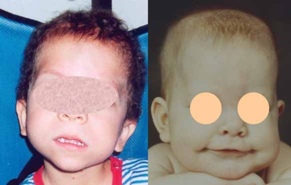 abnormalities, moderate to severe intellectual disability, abnormal muscle tone, and a distinctive facial appearance.