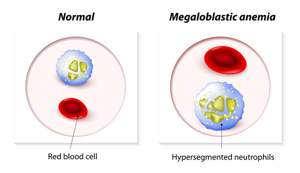 People with transcobalamin deficiency often develop a blood disorder called megaloblastic anemia. Megaloblastic anemia results in a shortage of red blood cells, and the remaining red blood cells are abnormally large. Individuals with transcobalamin deficiency may also have a shortage of white blood cells (neutropenia), which can lead to reduced immune system function. Decreased cellular cobalamin can lead to a buildup of certain compounds in the body, resulting in metabolic conditions known as methylmalonic aciduria or homocystinuria.