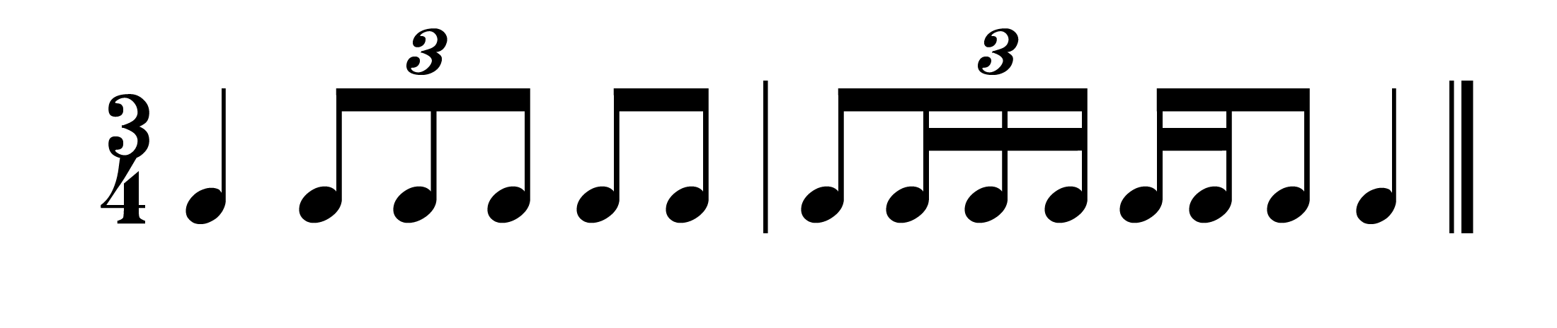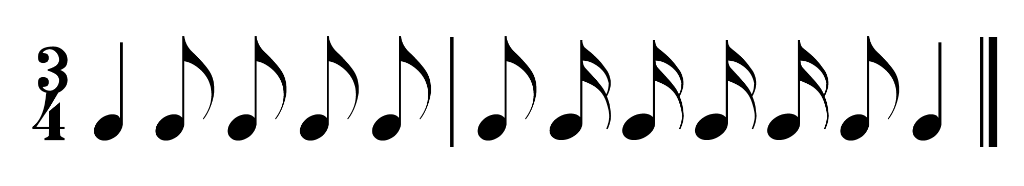 In this example, the eighth notes are not grouped with beams, making it difficult to interpret the triple meter.