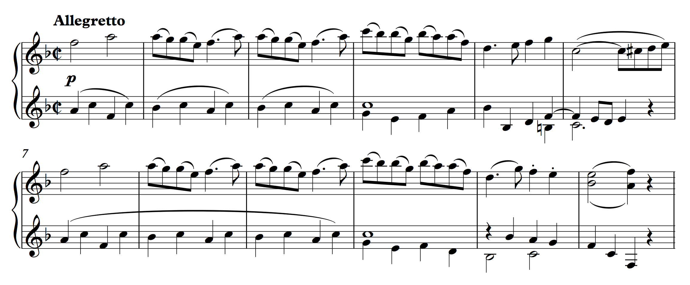 In the example above, the cadence in m. 8 gave rise to an expansion because as it was weaker than expected. (Primary themes rarely conclude with IACs.) This is one of the most common musical motivations for a phrase expansion. In addition to IACs, deceptive cadences can lead to expanded phrases, and not uncommonly, an expected cadence never materializes at all—an event often called an “evaded cadence.”