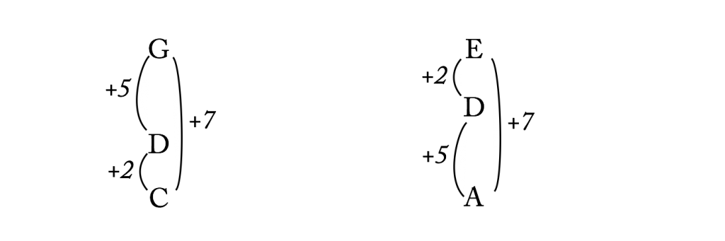 Conversely, to determine the TnI that relates two collections of pitch classes, find a common value to which they all sum. That is the n in TnI: