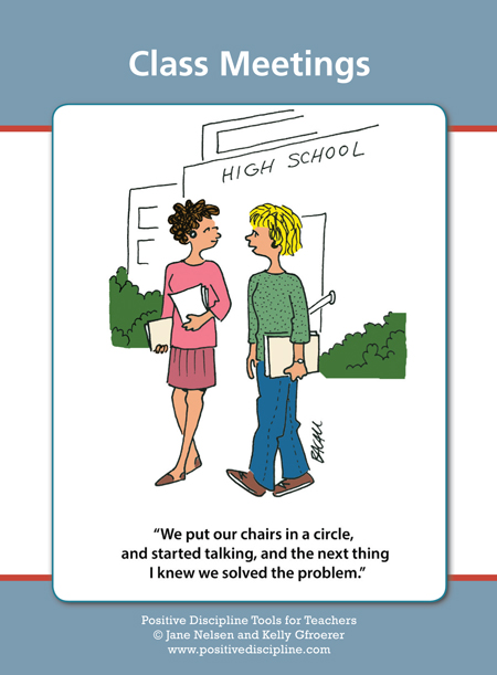 Students need training before they can be effective in Positive Discipline Class Meetings. Without training they may use the “skills” they are used to: blaming, punishing others, avoiding accountability for fear of receiving punishment. The book,