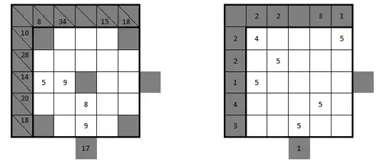 Grey squares mean that nothing goes there for the Kakuro ONLY, and also the Kakuro has the additional property that no two squares are the same horizontally, vertically or diagonally including through the center square.