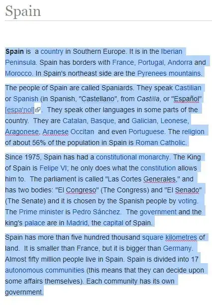 which you can then copy and paste into a machine translator. Then you will have the simple English version right next to the machine translated version and you've got your "Simple Spanish" Wikipedia page. It's kind of like a "reader" for Wikipedia pages: