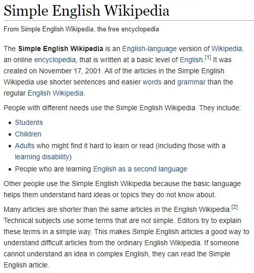But, short of that, you can take Wikipedia's simple English pages and have them translated by any number of machine translators. I recommend Reverso, DeepL, and Google Translate. You will run into a bit of trouble if you just try to copy and paste from the Simple English Wikipedia page (because everything on the page gets highlighted), but if you click on "Change":