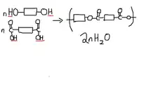 Notice that the -OH and H form H2O and the rest remains the same (but goes upright) to form the polymer and water. Here is the chemical formula: