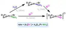 However, if the solvent isn't nucleophilic enough then only the incoming ligand is involved in the overall reaction such as the top reaction in figure 2.
