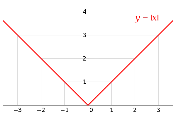 The graph of the absolute value function for real numbers.
