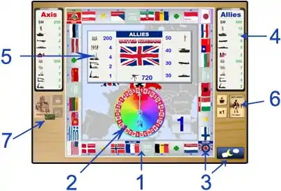 - Allies: is an alliance between United Kingdom, France and United States. France is less mentioned in this game.