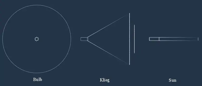 A Klieg Light emits light in the direction enclosed within the Cone Angle of the Light.