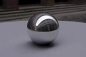 - Give the sphere a mirrored material : go to the Shading -> Material panel (F5) and find the Mirror Trans buttons.