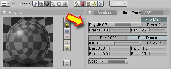 - Set the RayMir value to a value of 0.5 or higher. Your preview should show the reflection of the checkboard environment.