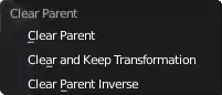 - Clear Parent: remove the parent/child relationship, and reset the child to the original transformation it had before the parenting.