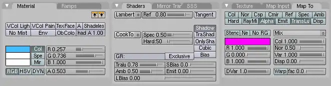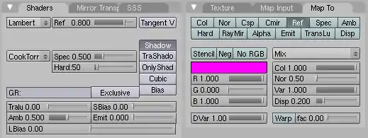 - In the Material buttons (F5), in the Map To panel, uncheck Col and check Ref.