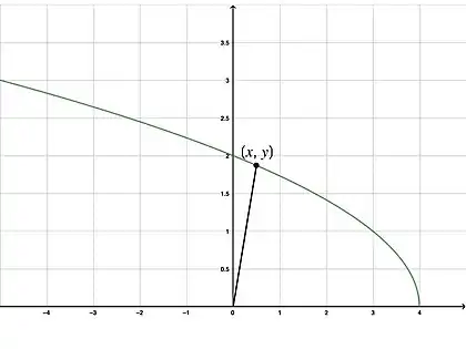 We want to leave the function at and minimize the distance required to reach the origin. This means we let . Recall that the origin is at , so . With all the information we have here, let us go ahead and write the distance function in terms of the singular variable. Because :