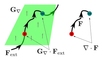 Given a simple path that starts at point and ends at point , the total displacement generated by is . This displacement is solely dependent on the endpoints as indicated by the top image to the right.