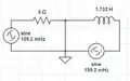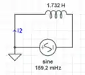The magnitudes match. The voltage through the source peaks before the current because the first source sees the inductor.