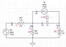 Complex 2R, L, C, voltage circuit