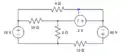 Find the current through the 3 ohm resistor assuming moving left to right is positive: