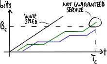 • high burstiness: the user keeps sending packets consecutively at wire speed → when he exceeds the committed burst size the service will not be guaranteed anymore.