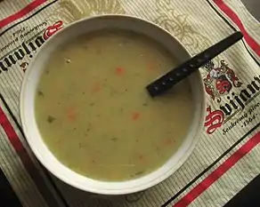 Zupa ogórkowa is a traditional Polish soup made out of sour, salted cucumbers.