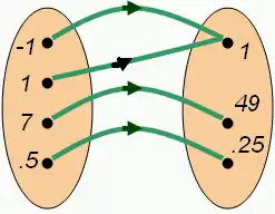 This function f maps numbers to their squares.