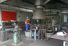 As the fire is so central to blacksmithing, the name of the fire place in English has come to represent the entire workshop as well.