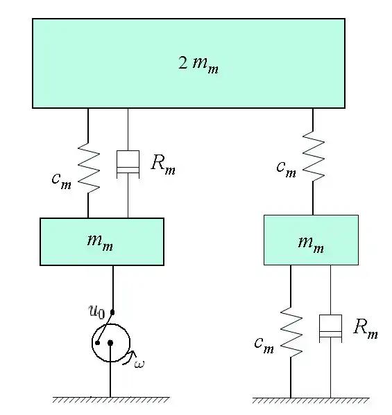 GIVEN: Two springs of stiffness, , and two bodies of mass,