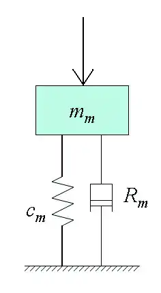 In order to incorporate the mechanical resistance (or damping) into the forced oscillator model, a dashpot is placed next to the spring. It is connected to the mass () on one end and attached to the ground on the other end. A new equation describing the forces must be developed: