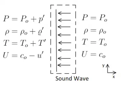 When sound waves propagate in a medium, they cause fluctuations in the pressure, density, temperature and particle velocity in the medium. The total pressure, , in the medium can be expressed as: