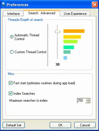 The thread number controls the maximum number of threads that may be used in a search. The automatic option sets this number internally depending on the size of the used HD space or the available processors (when you have Intel Core 2 Duo or AMD X2 CPU). When it is checked the slider on the right is grayed and no longer available.