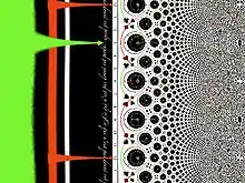 Here are examples of conformal maps[1] applied to pictures. This technique is a generalization of domain coloring where the domain space is not colored by a fixed infinite color wheel but by a finite picture tiling the plane. A pedagogical interest is to have a flow of pictures coming from a webcam to allow more interactivity and a richer feedback loop.[2]