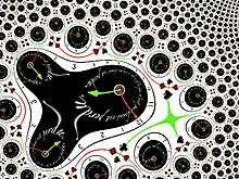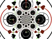 Considering the plane tiled by the picture of the clock, it becomes, when squared the following blurry picture: