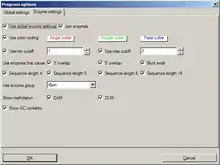Here the gloal enzyme options can be selected. These can be overridden for an individual sequence in the sequence editor, where there is a tab identical to this one.