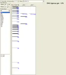 Upon selecting one of the resulting enzymes, the appropriate simulated gel will appear for visual inspection.