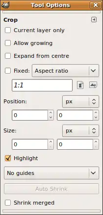 - Size - size of the selection to crop