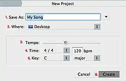 - Here you can set the time signature of your song, or, in other words, the beats per measure. Use the menu to choose between the different times. 'Note' that the time you choose will affect the number of loops you will be able to use in your project. If you are new to GarageBand, a 4/4 time is a good place to start.