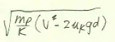 These concepts each created a formula. The above four concepts were worked into one formula describing the unknown s (distance spring was compressed) in terms of the known data: