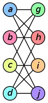 The complete bipartite graph is the graph composed of two disjoint subsets of cardinality respectively, such that contains an edge between each node in and every node in .
